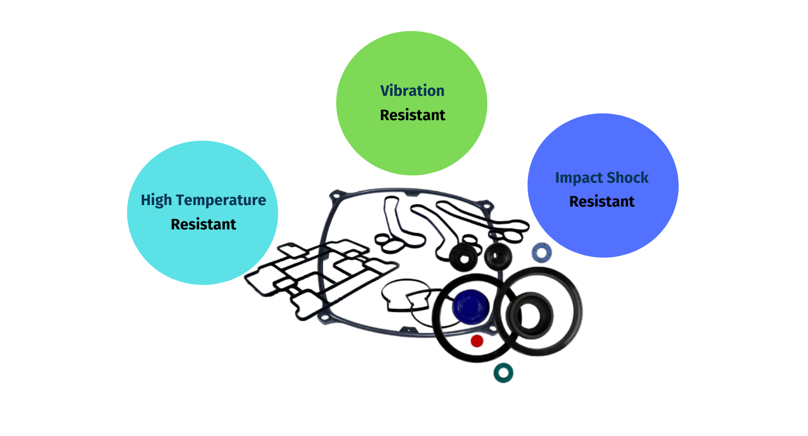 Gaskets seal the gap between the two surfaces. These are available in different sizes, shapes depending on the application. We at Harkesh Rubber LLP manufacture PHE Gaskets, Heat Exchangers for various OEM’s. Rubber seals are components that prevent leakage, resist chemicals & high pressures, reduce noise & vibration. These are available in different sizes, shapes depending on the application.